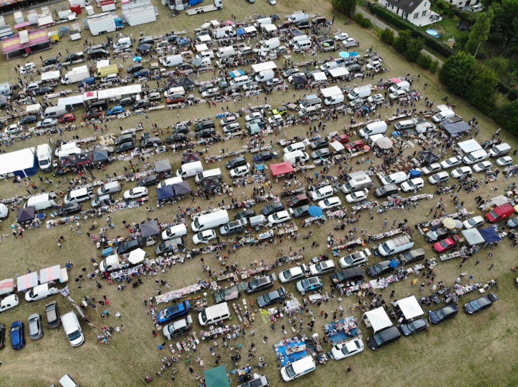 Le jour du vide greniers, les véhicules et/ou les remorques des exposants sont garés derrière chaque stand. Il est donc impossible aux exposants de quitter le vide-greniers avant 18h00. Le terrain d’exposition est enherbé.